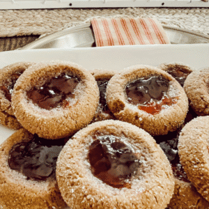 I shared a yummy recipe of gingerbread thumbprint cookies with raspberry jelly on the blog this week!
