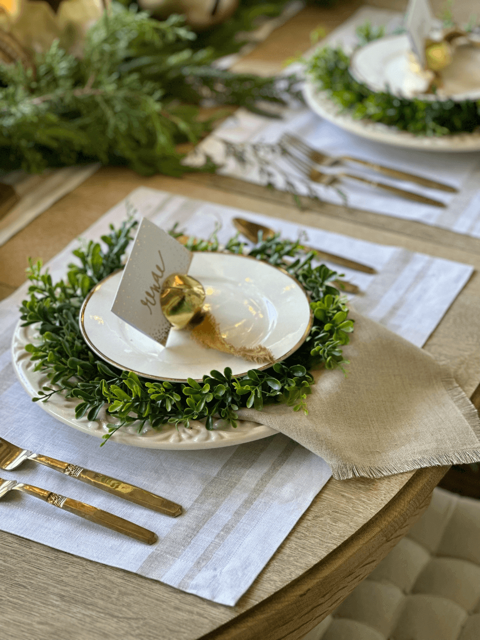 Meredith’s choice this week is this beautiful and simple Christmas Tablescape from Vintage Home Designs blog.
